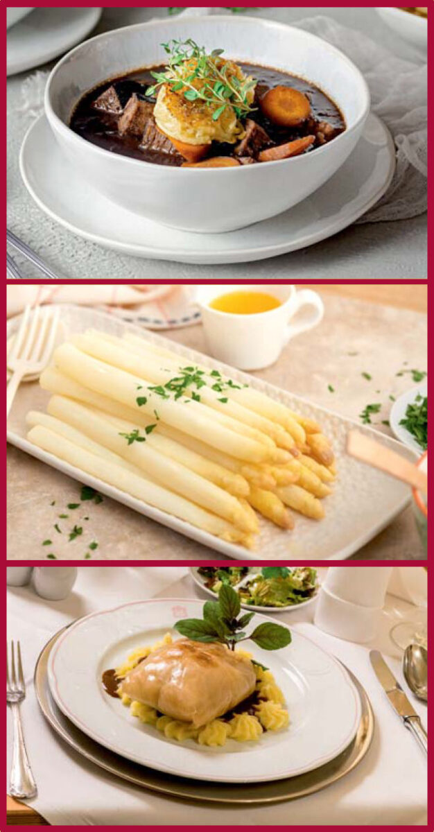 | Spargel mit Kartoffeln Sauce Hollandaise, dazu kleiner Salat | 14,50 € |